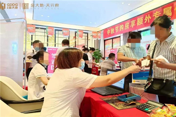难以掩饰的激动心情,很多业主早早的就来到了现场,在工作人员的指引下排队,等待交付,现场的氛围高涨,每个人脸上都洋溢着幸福的笑容。从入住资格审核到协议签署再到钥匙领取,每个流程都有工作人员的陪伴,有条不紊、秩序井然,金大地·天元府以至臻的服务为每位业主尽心尽责。